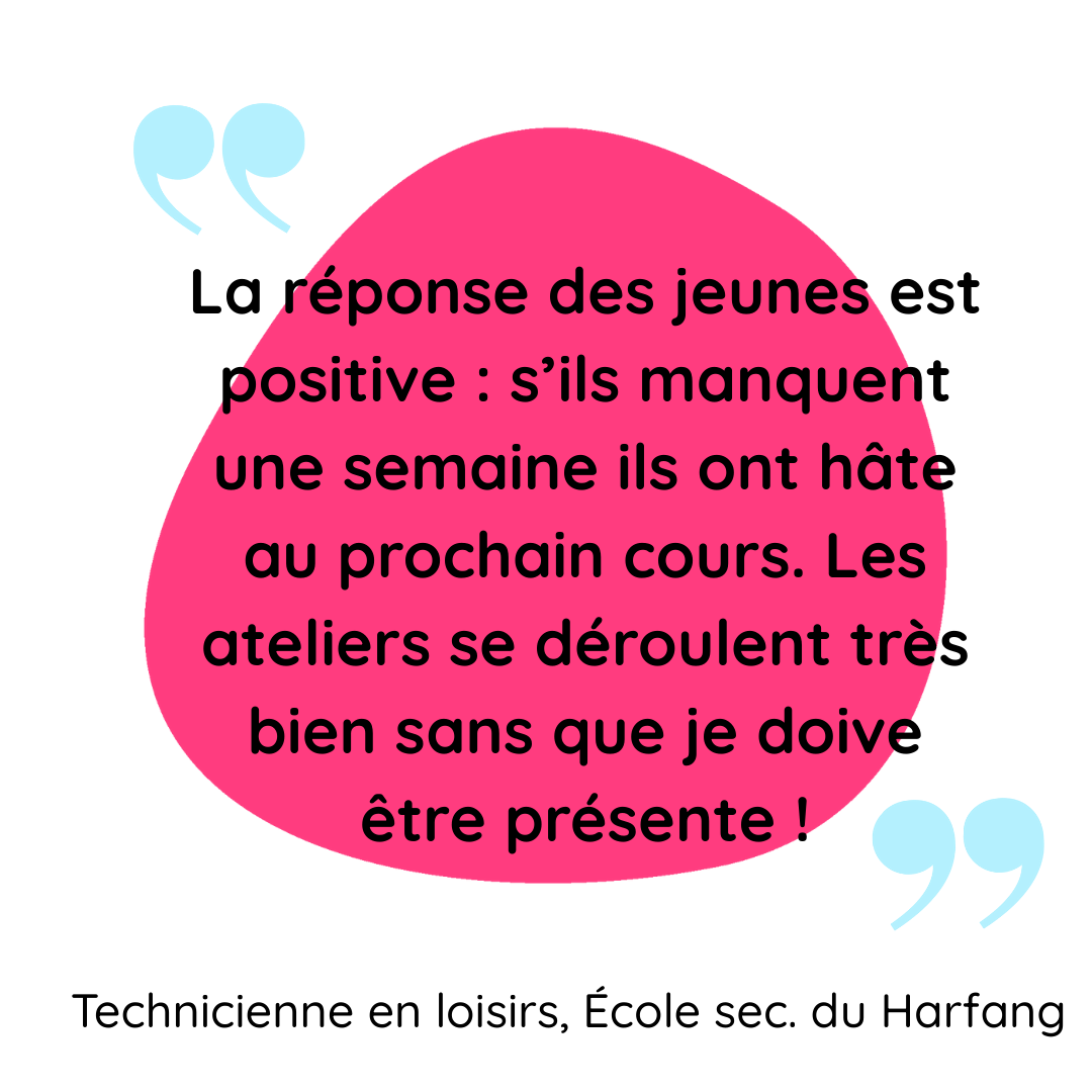 Les ateliers parascolaires sont ouverts à tous et pensés pour accueillir des groupes variés. Le rythme, les consignes et l’animation sont adaptés afin que chaque élève puisse participer pleinement, à sa façon.